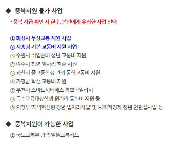 ※ 단 국토부의 광역 알뜰교통카드는 중복 지원이 가능합니다.