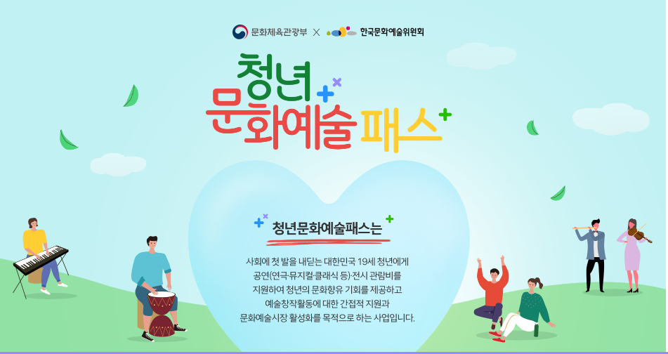 청년문화예술패스는 사회 첫발을 내딛는 19세 청년들에게 문화예술 공연, 전시회관람비 15만 원을 지원하는 정부 지원사업입니다.