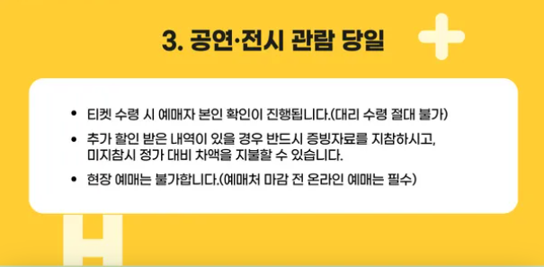 - 예매 티켓 수령 시 예매자 본인 확인 절차가 필수입니다.
