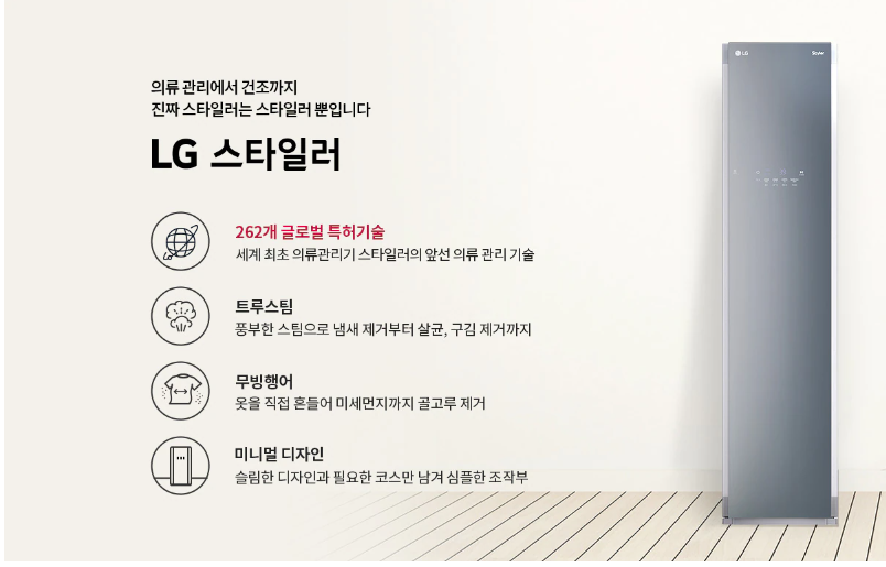 TV 4 모델, 워시타워 건조기, 스타일러, 청소기, 냉장고, 김치 냉장고 2 모델, 식기세척기, 전기레인지 2 모델, 공기청정기
